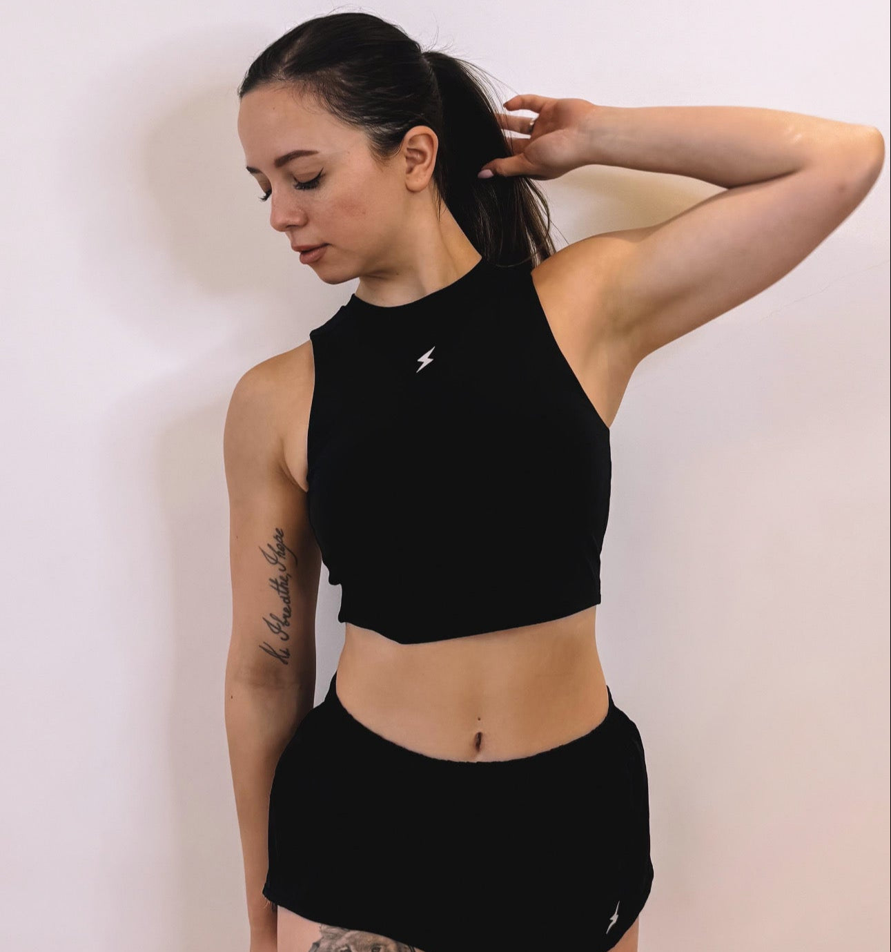 With its high neckline and racerback cut, this crop top was built for strength. The compressive fabric molds to your body for confident, structured movement.